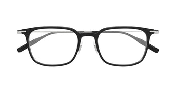 The Montblanc MB0100O is a men’s acetate frame with a black front and silver sides. Sleek, stylish, and designed for everyday sophistication.