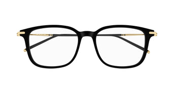 The Montblanc MB0413OA glasses are a statement in modern men’s eyewear. This square acetate frame features a classic black front paired with sleek gold sides, offering a sophisticated mix of boldness and subtle luxury.